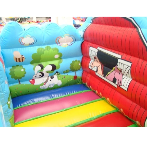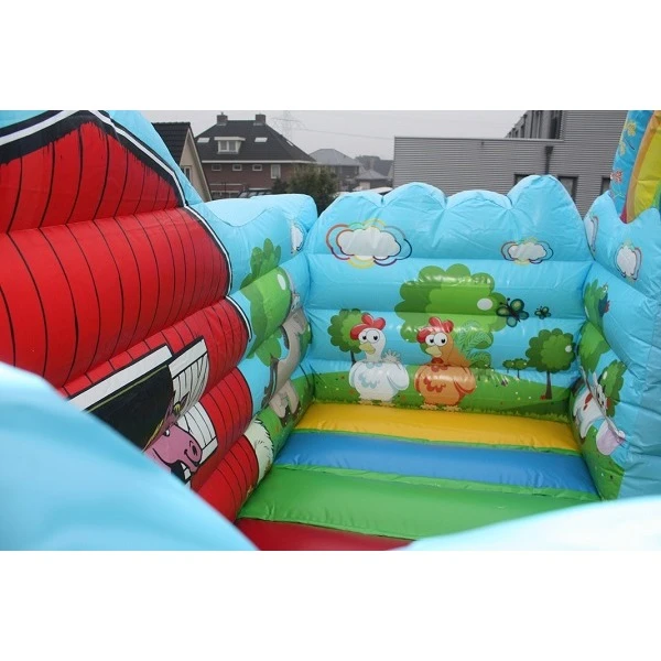 Zijn uw kinderen gek op dieren? Dan zit u met dit springkussen geheid goed! Een kleurrijk kussen voor de allerkleinsten, in een boerderijthema. Zowel aan de buiten- en binnenkant zijn de bekende boerderijdieren zoals koeien, kippen, paarden en honden te zien. Het springkussen is rondom dicht, de enige opening zit bij de ingang. U kunt de kinderen dus met een gerust hart laten springen!