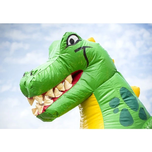Jurassicpark wordt nu werkelijkheid! Pas op, een t-rex, ren door zijn benen! De raptors staan je binnen op te wachten.. snel tussen de obstakels door en de glijbaan af, waar de stegosaurus haar eieren staat te bewaken. Hoe spannend kan het zijn, in dit multifun springkussen Dino!