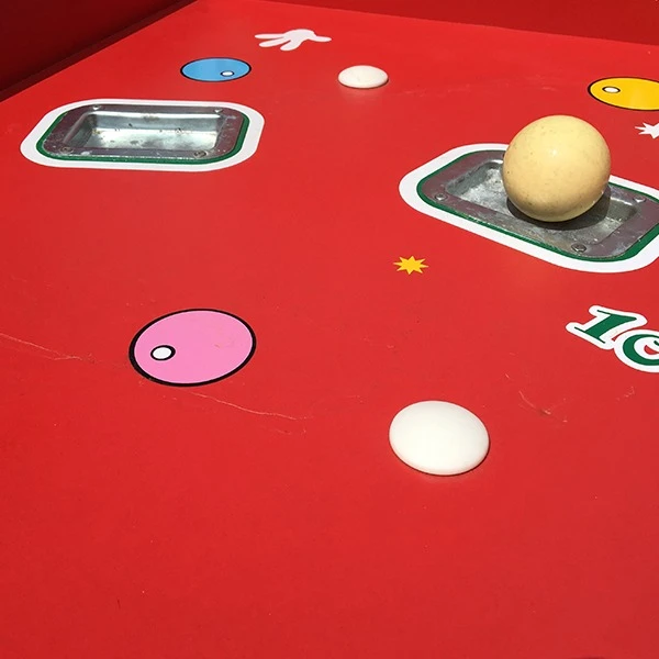 Rol de houten kogel over de baan zodat deze op het uiteinde in de puntengaten rolt. De baan is aan het uiteinde voorzien van een verhoging als extra spelelement.