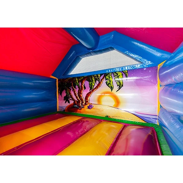 - Dit springkussen is overdekt en houdt lichte regenval tegen. Een springkussen is nooit 100% waterdicht.