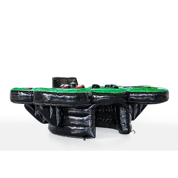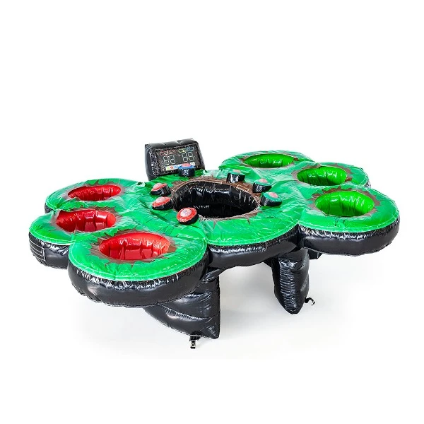 Het populaire Whack-a-mole spel is er nu ook in een Interactieve variant! Twee teams strijden tegen elkaar om de meeste punten te scoren. Als "mol" probeer je zo vaak mogelijk op de targets te slaan, maar pas op dat je niet op je hoofd getikt wordt met de opblaasbare hamer van de speler in het midden! Je krijgt punten door de targets te raken, maar je bent af wanneer je geraakt wordt door de hamer. Het scorebord houdt de teamscore bij.