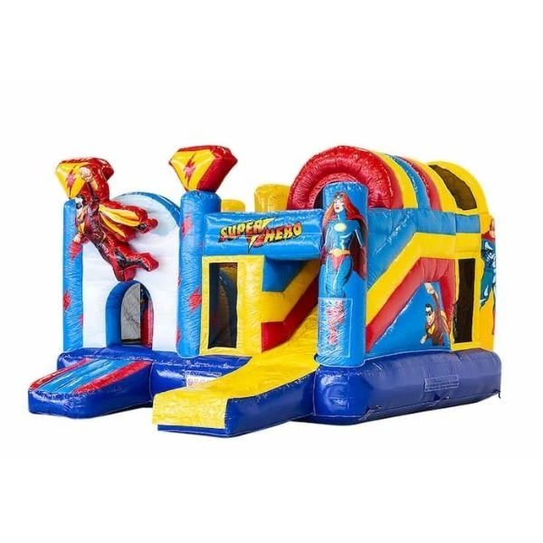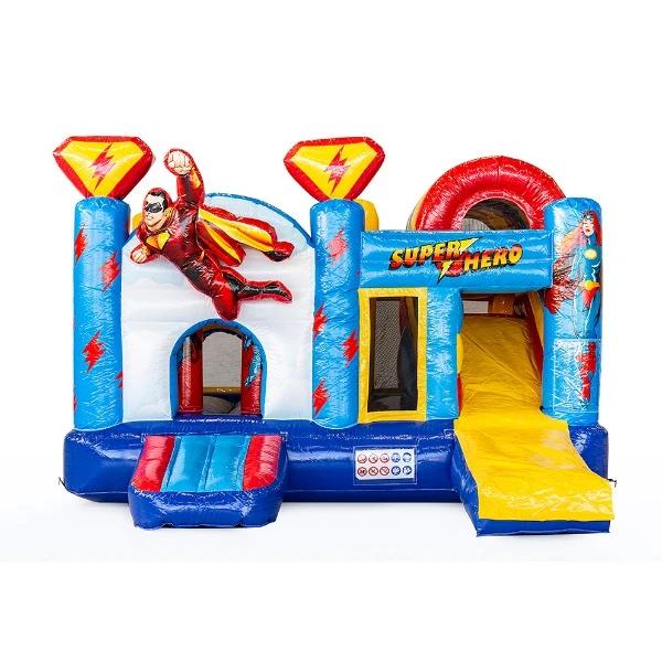 Voel je een échte superheld op dit supergave superhelden springkussen! Vlieg van de glijbaan af als Superman, klauter tussen de obstakels door als Spiderman of spring een gat in de lucht als Springkussenman!