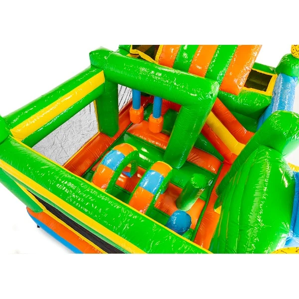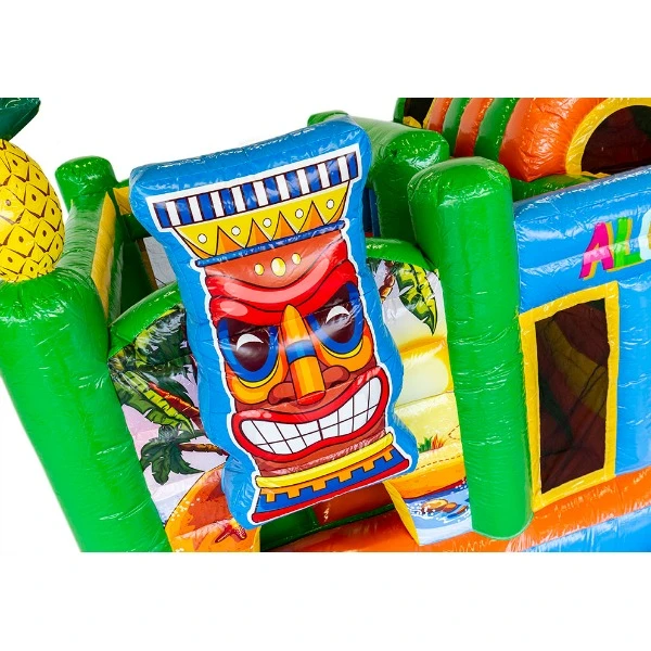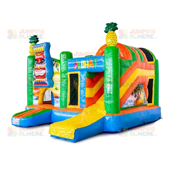 Dit gave springkussen is geheel in Aloha Hawai stijl en past op elk zomers themafeest! Dit springkussen is voorzien van obstakels, een glijbaan en een zomers thema.