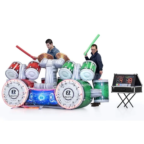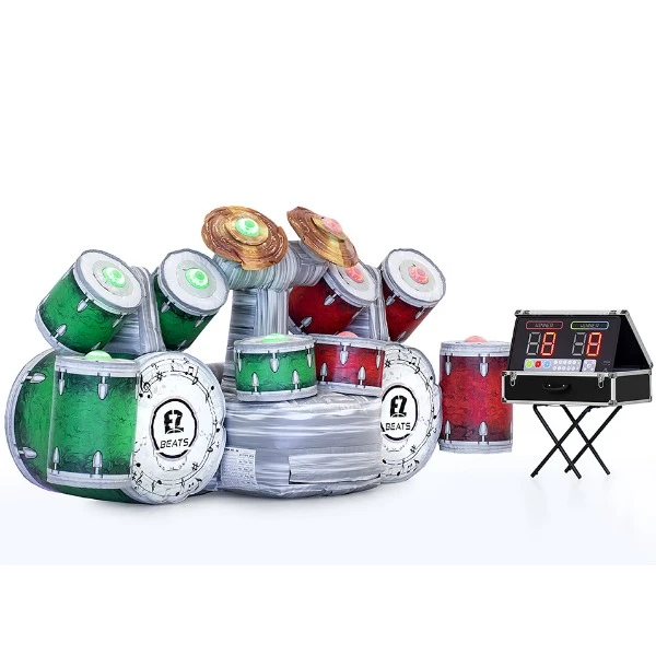 Wie mag zich de beste drummer noemen? Laat 2 spelers tegen elkaar strijden in deze leuke muzikale battle. Door met de foam knuppels of met de handen, op de interactieve spots te slaan, moet je zoveel mogelijk punten zien te scoren. Het interactieve systeem geeft aan welke spot de spelers moeten zien te raken. Doordat de spots steeds oplichten, geeft het een cool effect en het maakt het spel nog spannender!