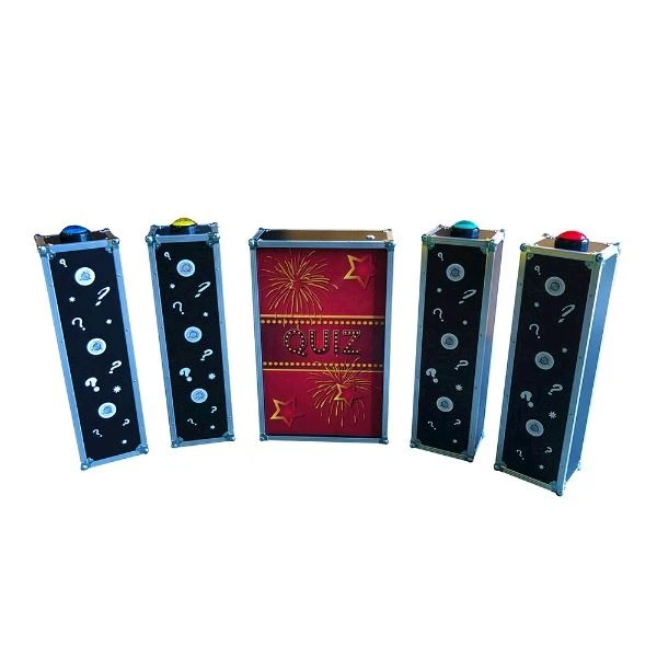 Met dit leuke elektronische Quiz spel haal je de bekende televisie quizzen in huis! Wij leveren de set met verschillende leuke quizvraag in diverse niveau's, maar nog leuker is natuurlijk om je eigenlijk vragen te bedenken. Denk hierbij aan leuke algemene kennisvragen, persoonlijke familievragen, óf muziekvragen!