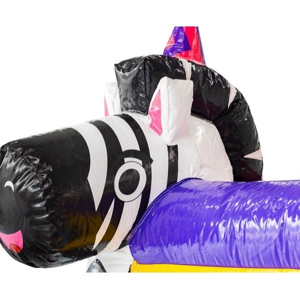 - Dit springkussen is overdekt en houdt lichte regenval tegen. Een springkussen is nooit 100% waterdicht.