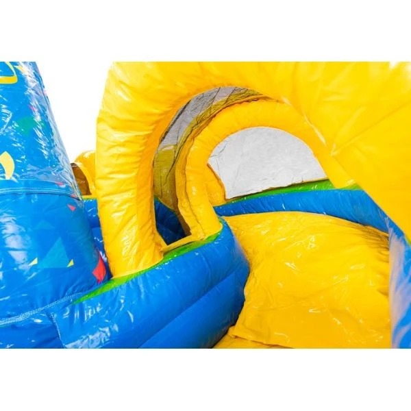- Dit springkussen is overdekt en houdt lichte regenval tegen. Een springkussen is nooit 100% waterdicht.