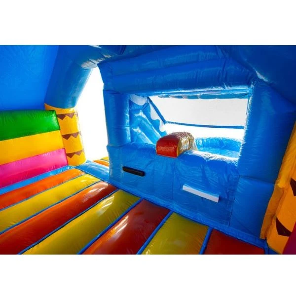 - Dit springkussen is overdekt en houdt lichte regenval tegen. Een springkussen is nooit 100% waterdicht.