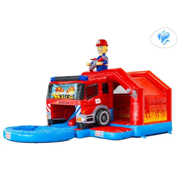 Springkussen Midi Brandweer Dubbelslide met Plonsbad
